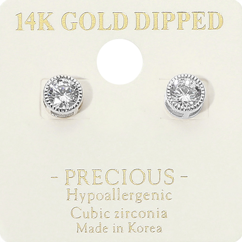 14K Gold Dipped Hypoallergenic Round CZ Stud Earrings