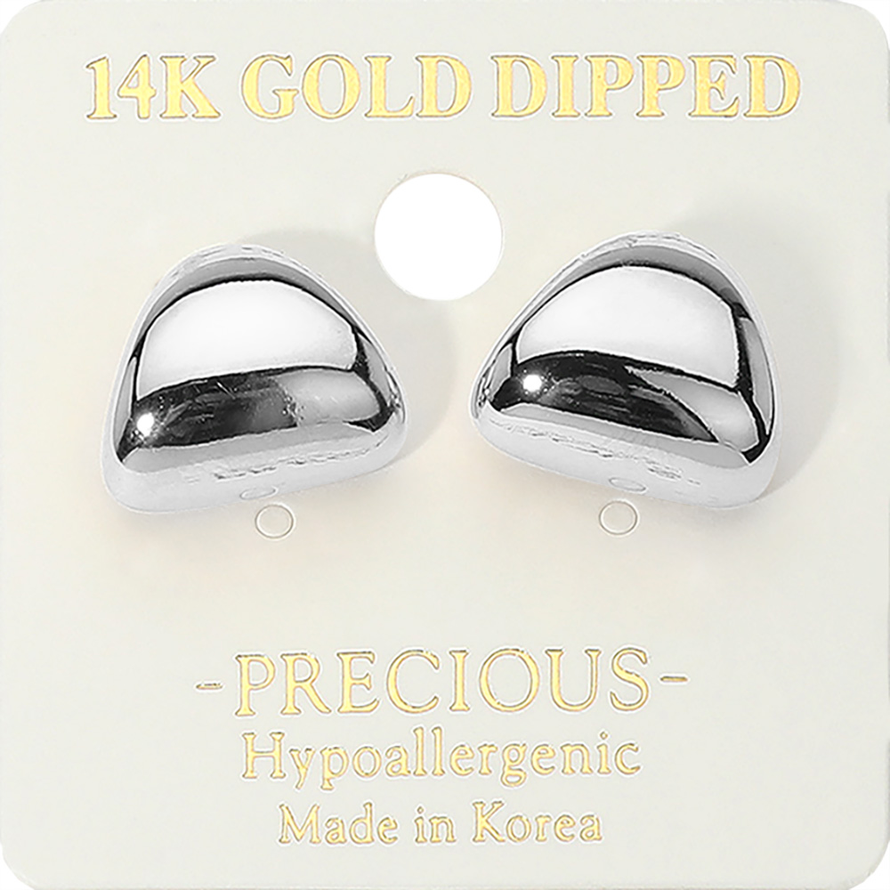 Details • Size : 0.7" X 0.5" • Post Back • These stud earrings feature a bold, sculpted dome shape with smooth, curved edges for a sleek, contemporary look. Their minimalist style adds a refined touch, making them perfect for both casual and elevated ensembles. • Gold Dipped • Hypoallergenic • Made In Korea