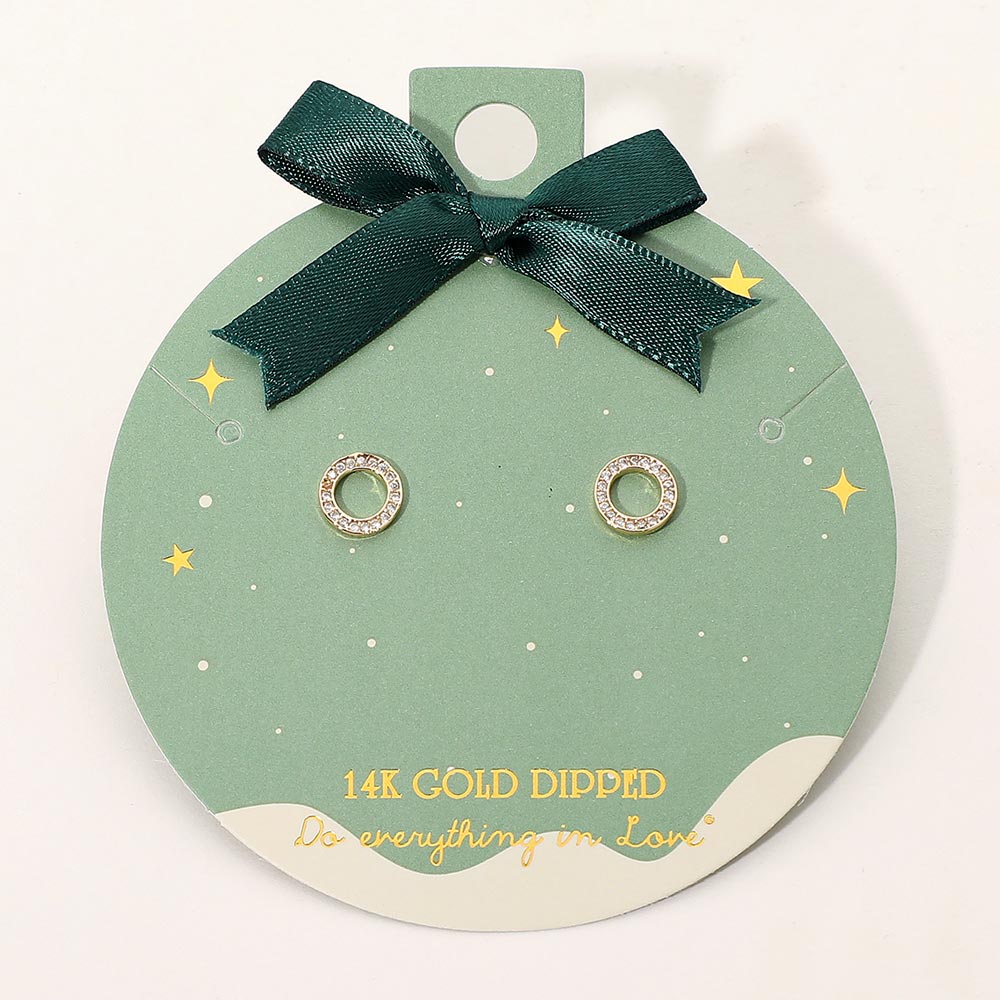 Details • Size : 0.3" X 0.3" • Post Back • Elegant open circle stud earrings featuring a minimalist silhouette accented with sparkling stones. A refined 14K gold dipped accessory that adds subtle shine to everyday looks and special occasions. Perfect for gifting or enhancing your jewelry collection with timeless simplicity. • Gold Dipped • Hypoallergenic • Lead and Nickel Compliant • Made In Korea