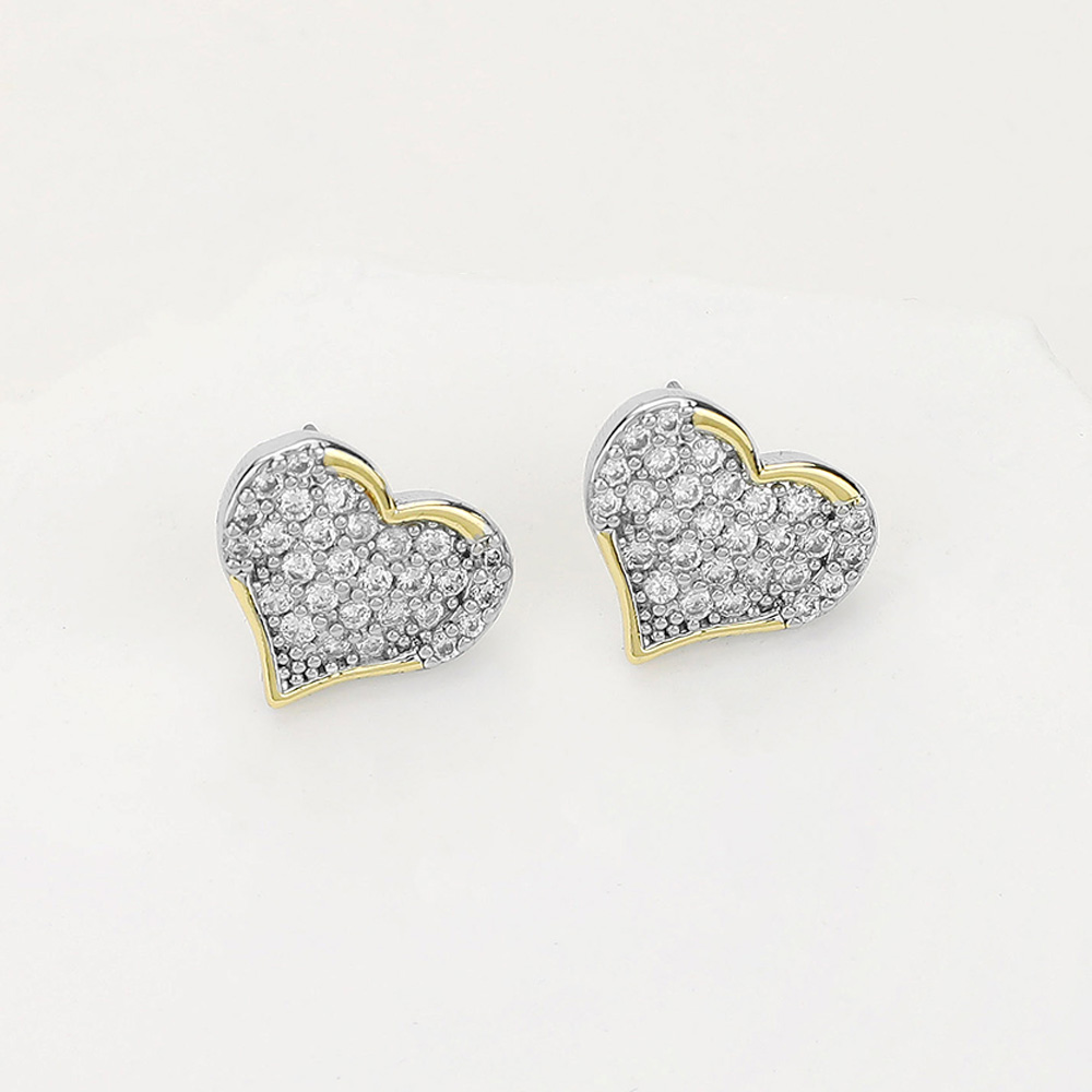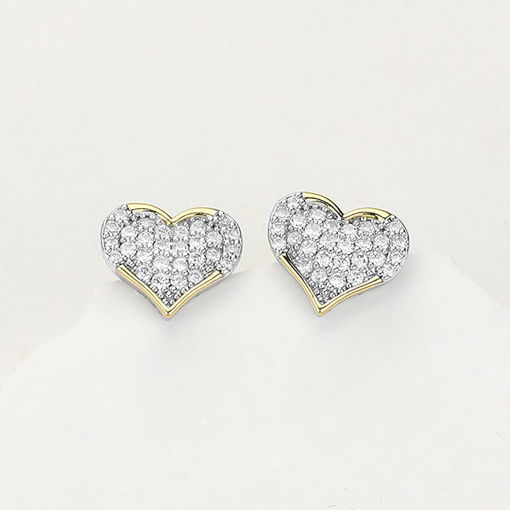 Details • Size : 0.6" X 0.6" • Post Back • Elegant heart stud earrings featuring a pave crystal design for a romantic and refined touch. Perfect for special occasions or everyday elegance, these earrings make a lovely gift or personal statement piece. • Gold Dipped • CZ Cubic Zirconia
