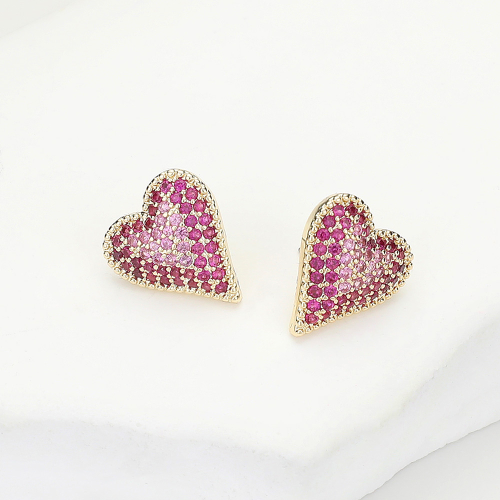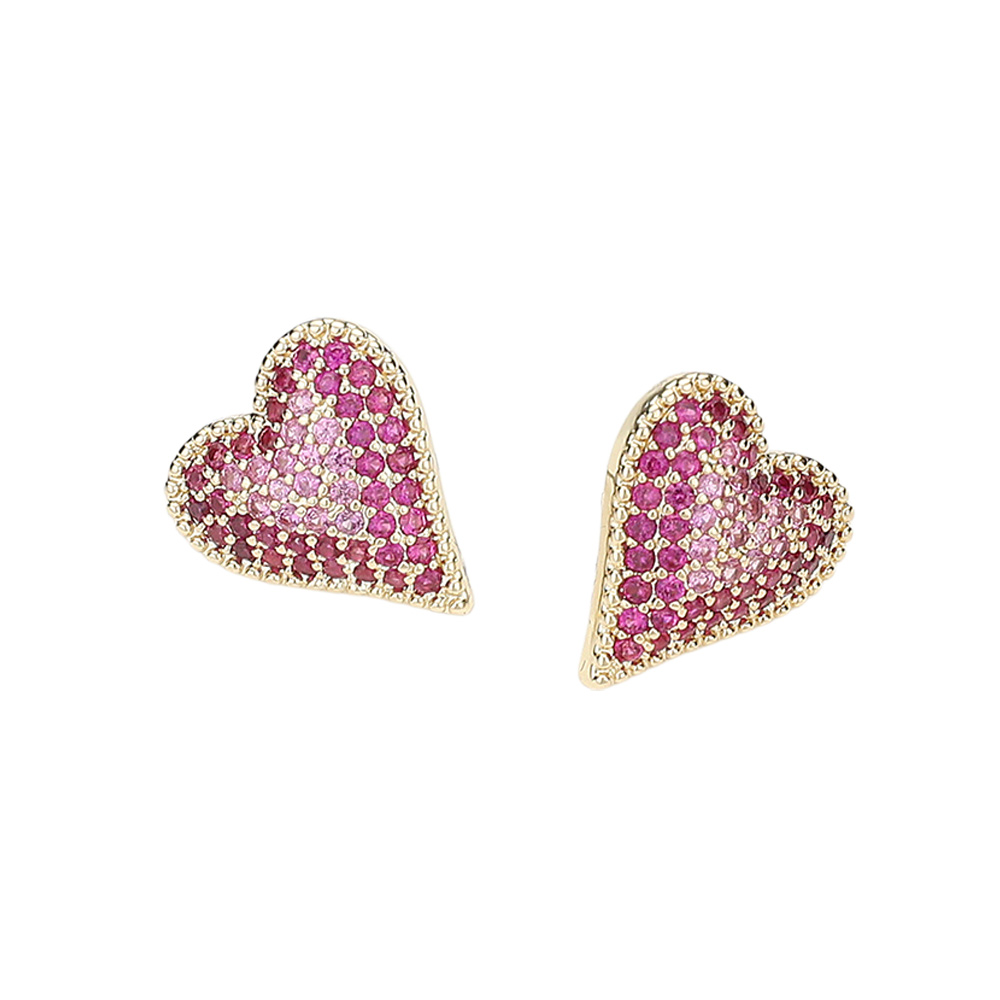 Details • Size : 0.6" X 0.75" • Post Back • Chic heart stud earrings designed with a refined silhouette and shimmering stone accents for everyday elegance. Lightweight and comfortable for all-day wear, these studs add a romantic yet modern touch to casual outfits, special occasions, gifting collections, and curated accessory displays. • Gold Dipped • CZ Cubic Zirconia
