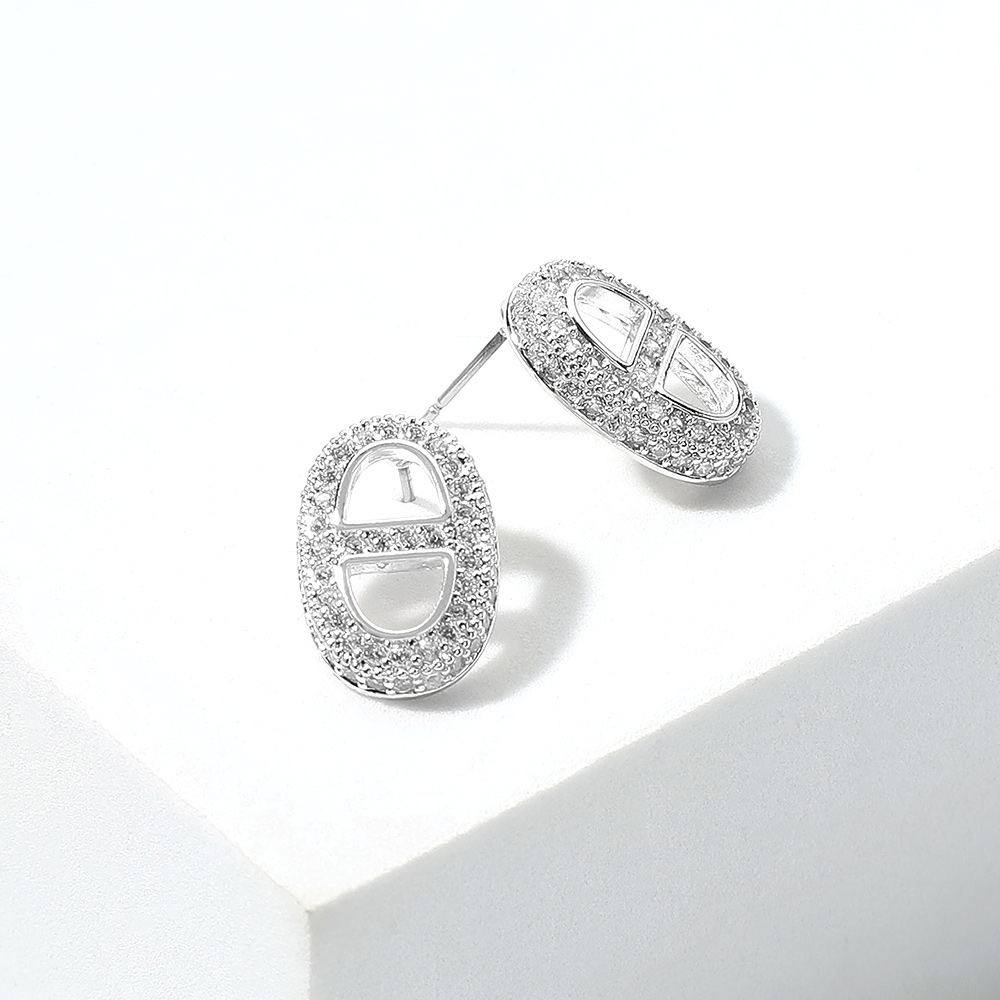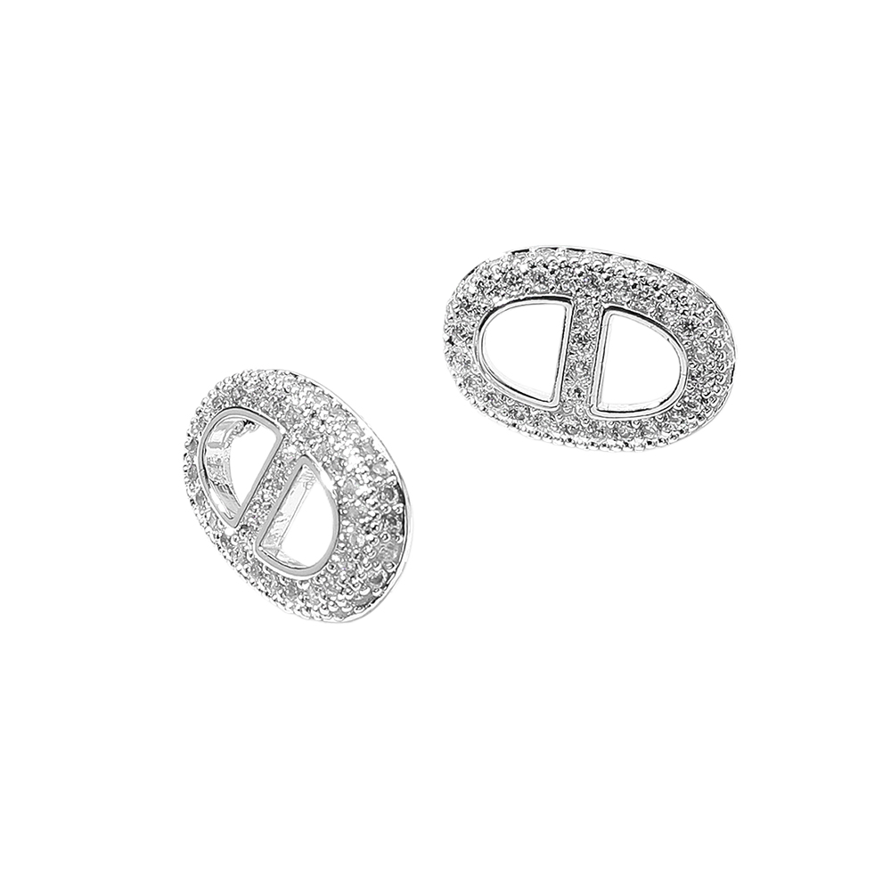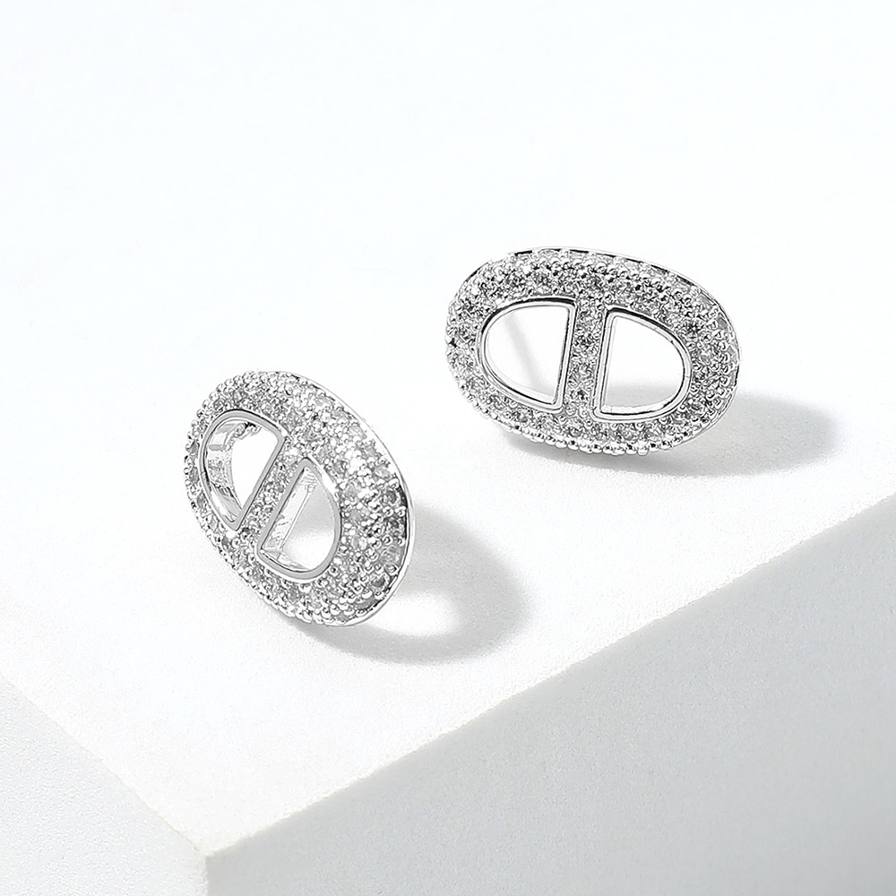 Details • Size : 0.5" X 0.7" • Post Back • Shine with sophistication in these oval stud earrings adorned with sparkling crystal accents. A chic and versatile accessory that adds elegance to casual outfits or evening looks, making them a perfect gift or timeless jewelry essential. • Gold Dipped • CZ Cubic Zirconia