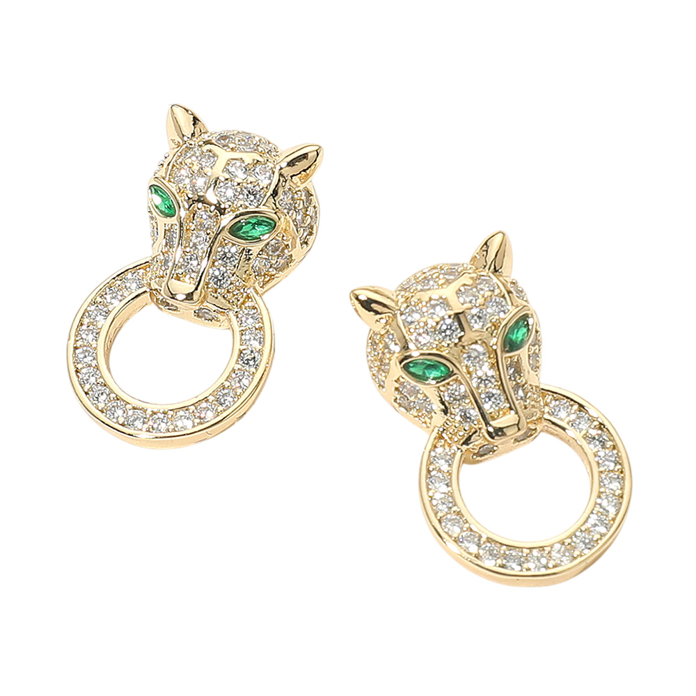 Details • Size : 0.6" X 0.9" • Post Back • Make a bold statement with panther head earrings featuring shimmering crystal accents and striking detail. Perfect for fashion-forward looks, these earrings add power, elegance, and a fierce edge to any outfit. • CZ Cubic Zirconia • Gold Dipped