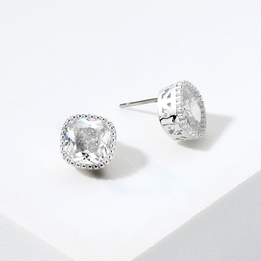 14K Gold Plated Square CZ Stone Stud Earrings