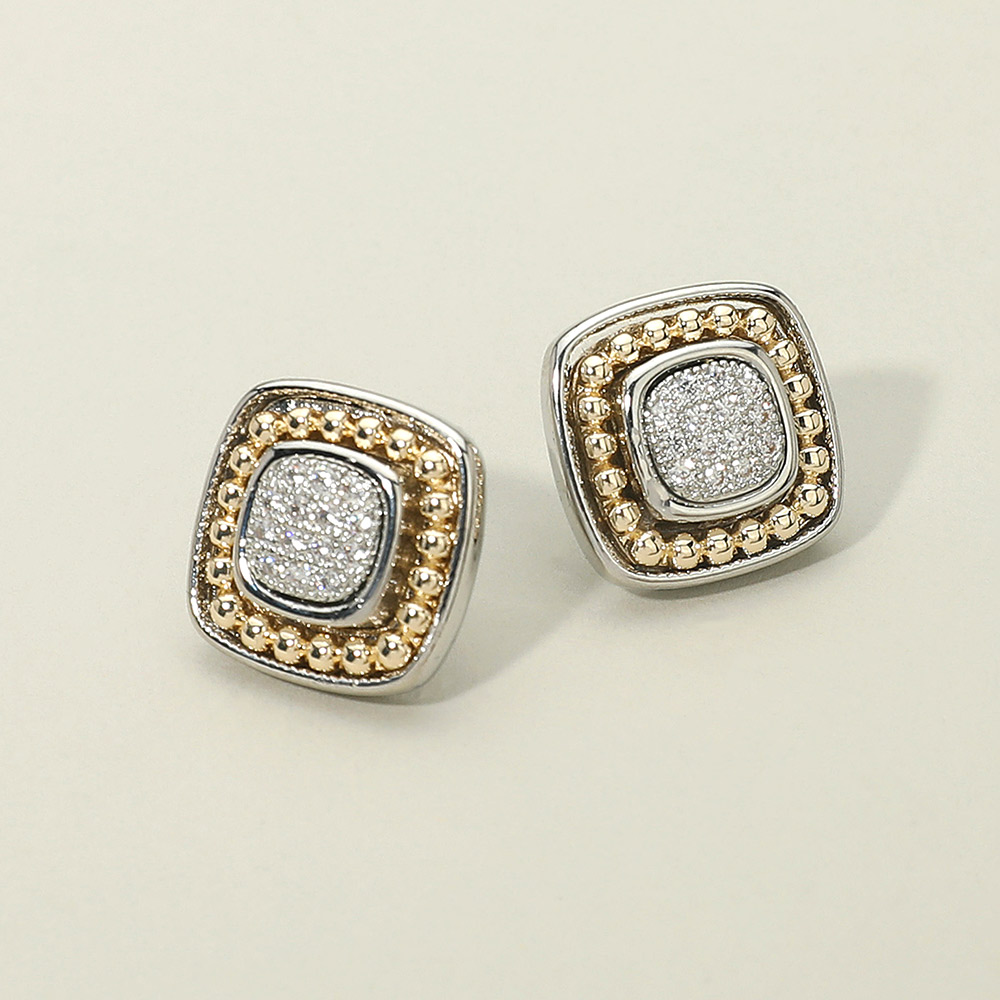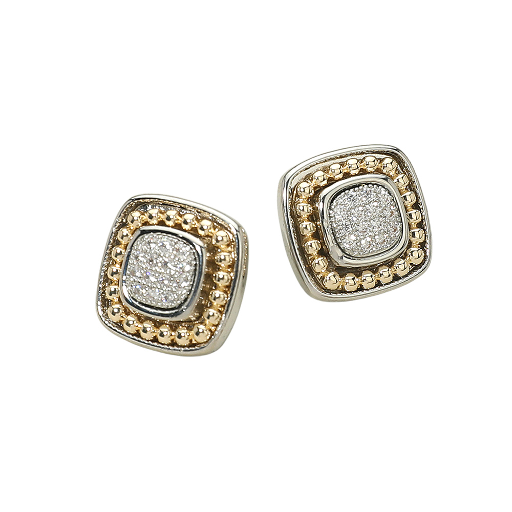 Details • Size : 0.75" X 0.75" • Post Back • Sophisticated square stud earrings adorned with sparkling stones at the center, framed by a polished beaded border. Their timeless yet modern style makes them a versatile accessory for casual wear or elegant occasions. • CZ Cubic Zirconia • Gold Dipped