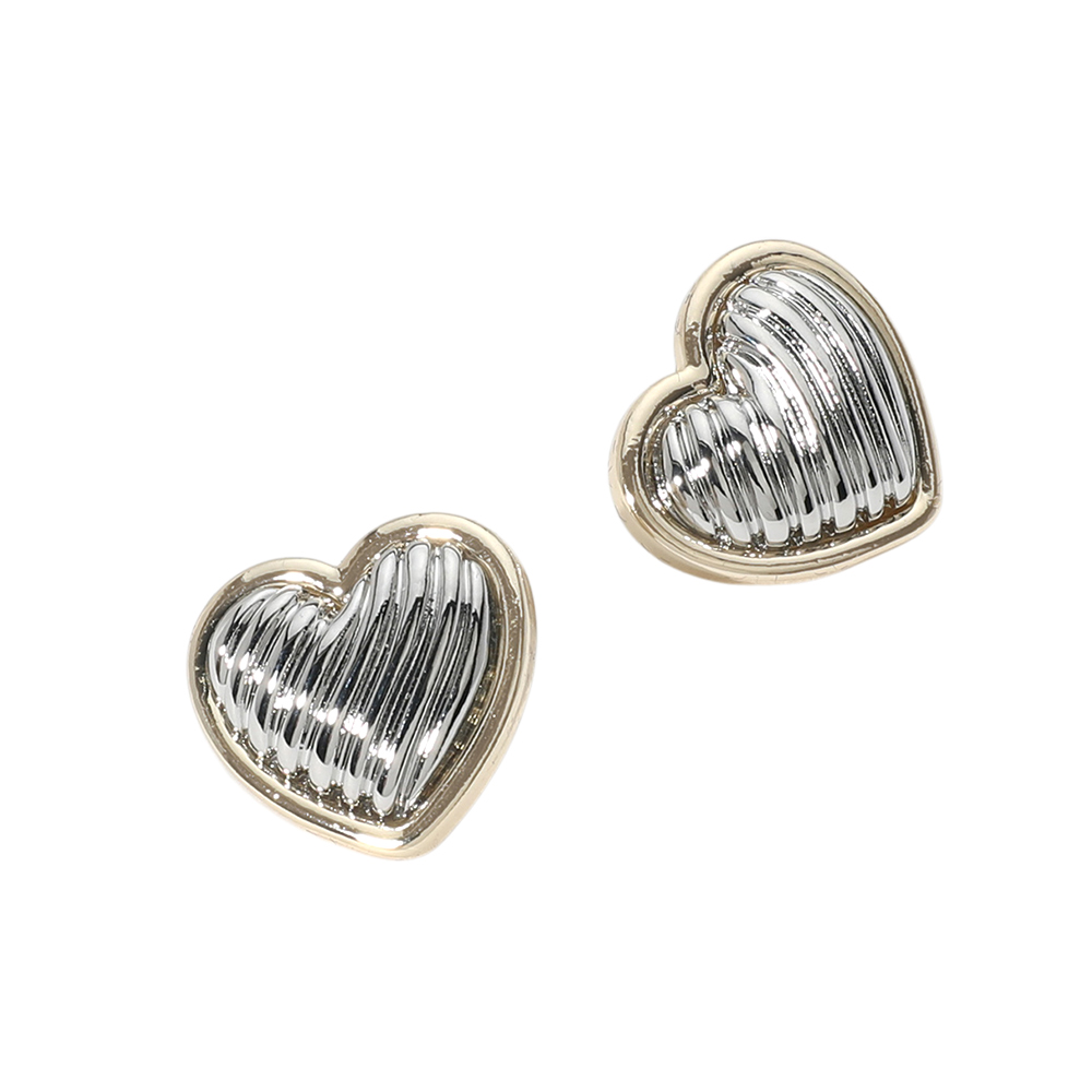Details • Size : 0.9" X 0.9" • Post Back • Chic heart-shaped stud earrings featuring a textured design that adds depth and shine. Perfect for everyday wear or special occasions, these lightweight earrings bring a touch of romance and style to any outfit, making them a versatile addition to your jewelry collection. • Gold Dipped