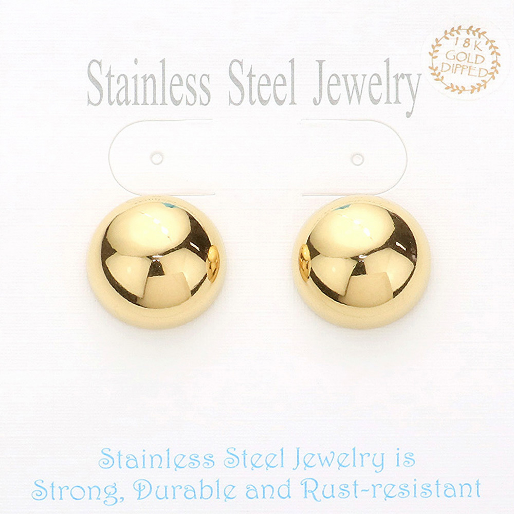 18K Gold Dipped Stainless Steel 0.75 Inch Metal Dome Stud Earrings