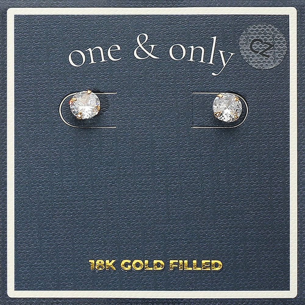 Details • Size : 0.2" X 0.2" • Post Back • Elegant round stud earrings featuring sparkling cubic zirconia set in 18K gold filled metal. These timeless studs are hypoallergenic and perfect for everyday wear or special occasions. Add a touch of brilliance and simplicity to your jewelry collection with these classic essentials. • CZ Cubic Zirconia • Gold Filled • Lead and Nickel Compliant • Made In Brazil