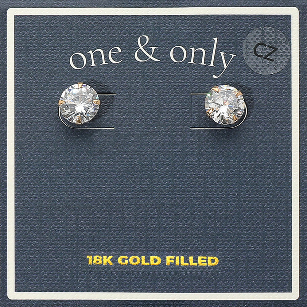 Details • Size : 0.3" X 0.3" • Post Back • Elegant round stud earrings featuring sparkling cubic zirconia set in 18K gold filled metal. These timeless studs are hypoallergenic and perfect for everyday wear or special occasions. Add a touch of brilliance and simplicity to your jewelry collection with these classic essentials. • CZ Cubic Zirconia • Gold Filled • Lead and Nickel Compliant • Made In Brazil
