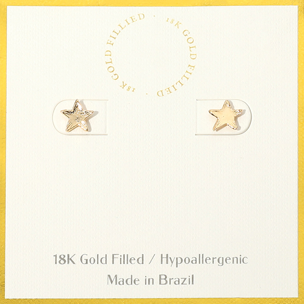 Details • Size : 0.3" X 0.3" • Post Back • Minimalist star stud earrings crafted in 18K gold-filled material, perfect for adding a subtle celestial touch. Hypoallergenic and made in Brazil, these lightweight earrings offer everyday comfort and charm—ideal for layering, gifting, or wearing solo with casual and dressy looks. • Lead and Nickel Compliant • Hypoallergenic • Gold Filled • Made In Brazil
