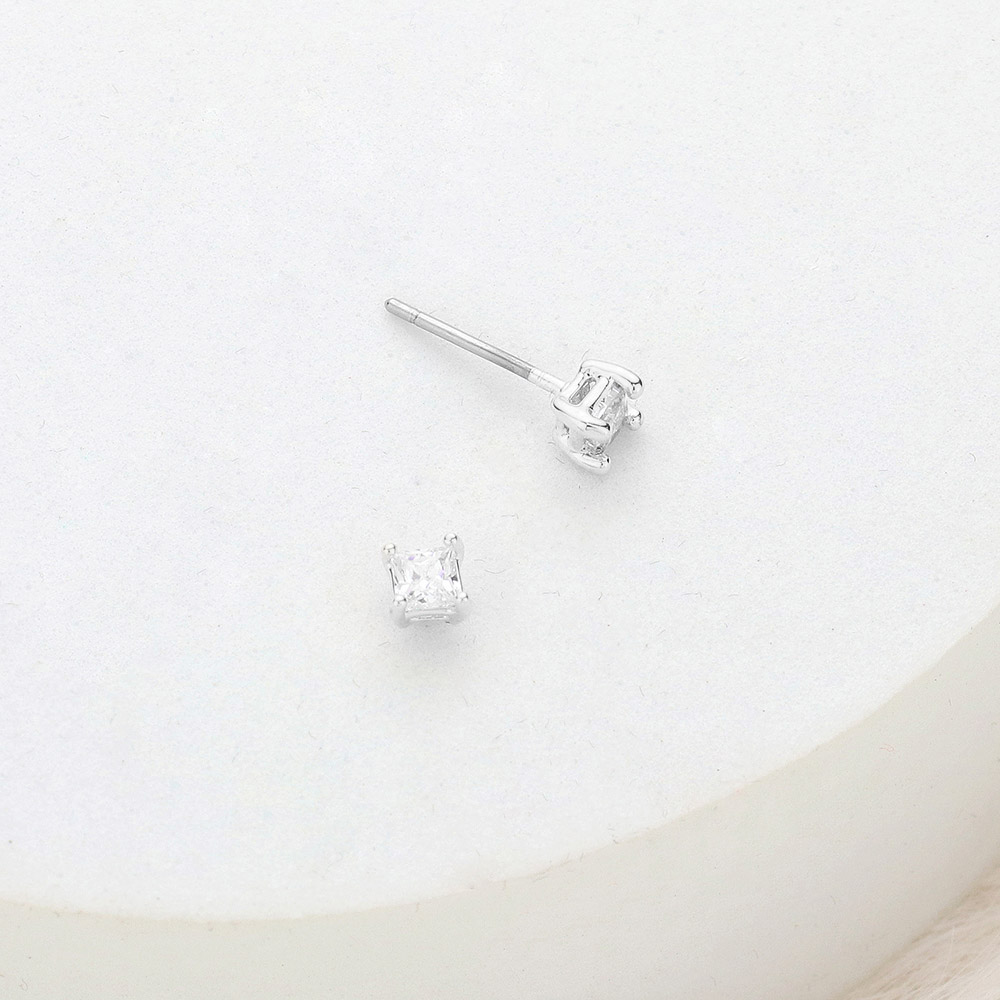 3mm Square Crystal Cubic Zirconia CZ Stud Earrings with Clear Box