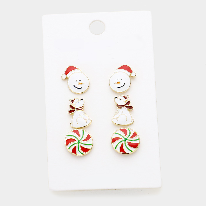 3Pairs - Christmas Snowman Polar Bear Earrings