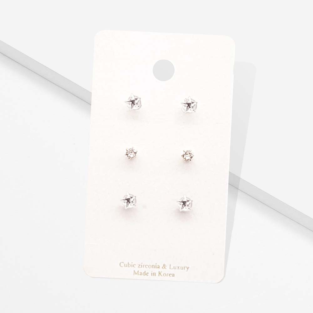 3Pairs - CZ Star Round Stud Earrings