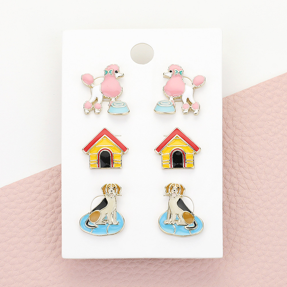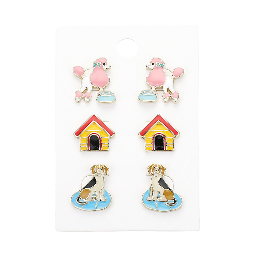 3PAIRS - Enamel Dog Stud Earring Set
