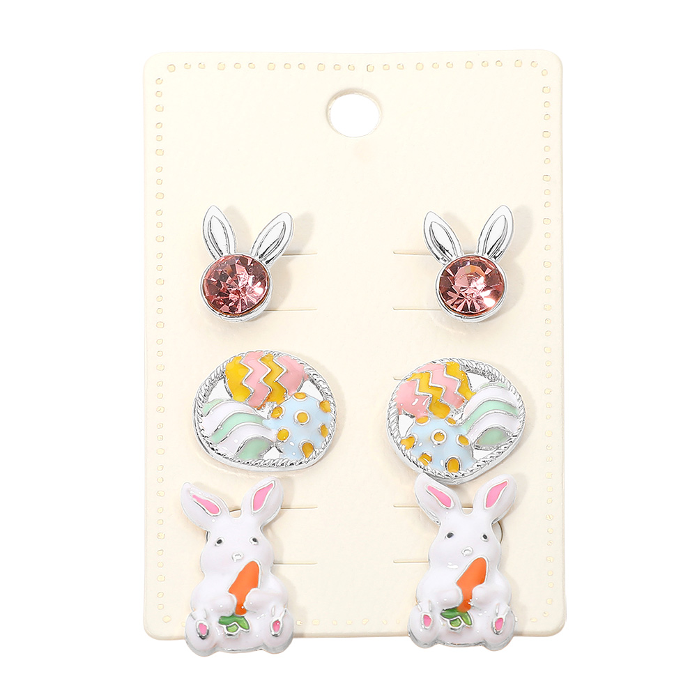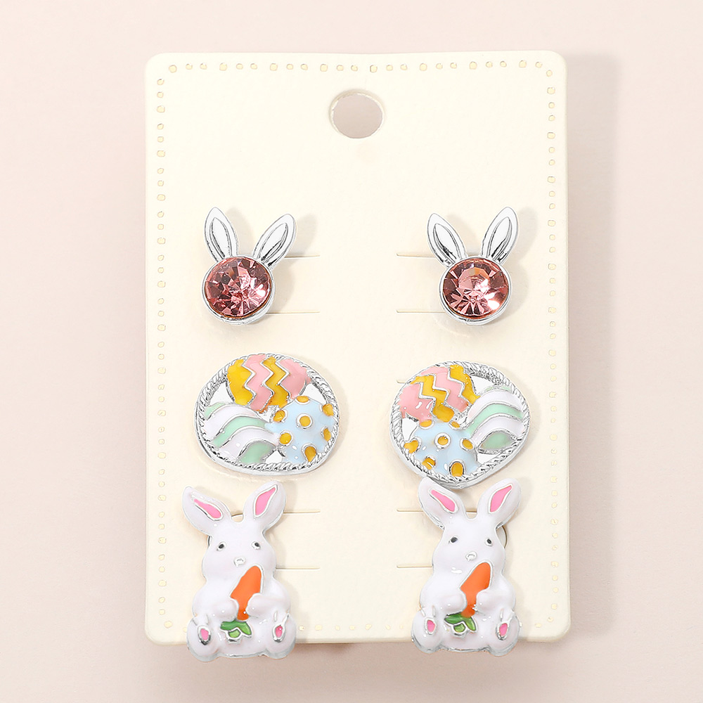 3Pairs - Enamel Easter Bunny Egg Stud Earring Set 3Pairs - Enamel Easter Bunny Egg Stud Earring Set