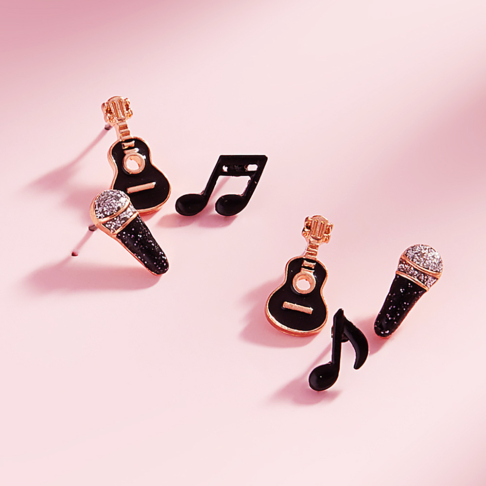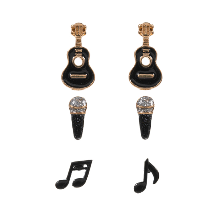 3PAIRS - Enamel Guitar Mic Music Note Stud Earring Set