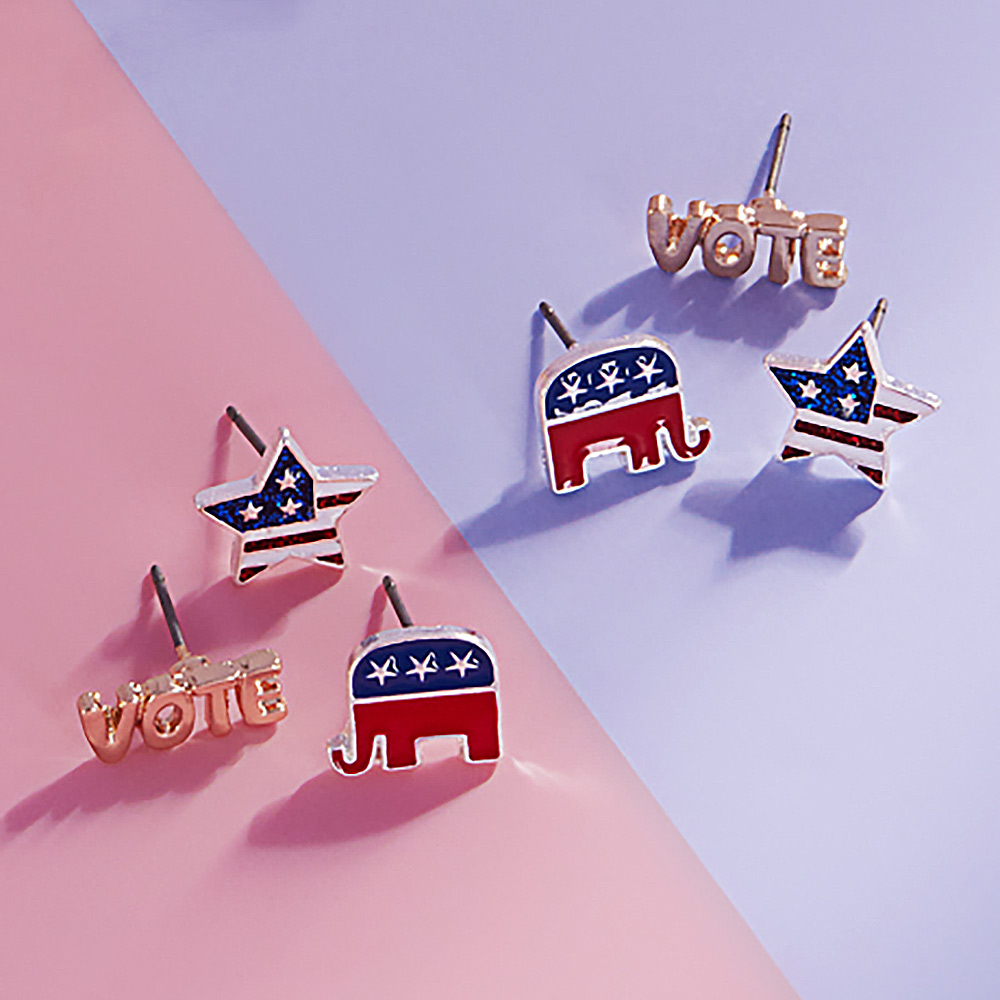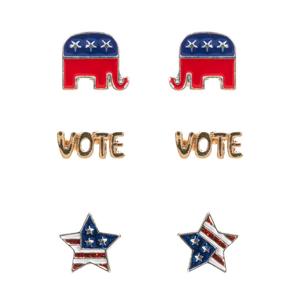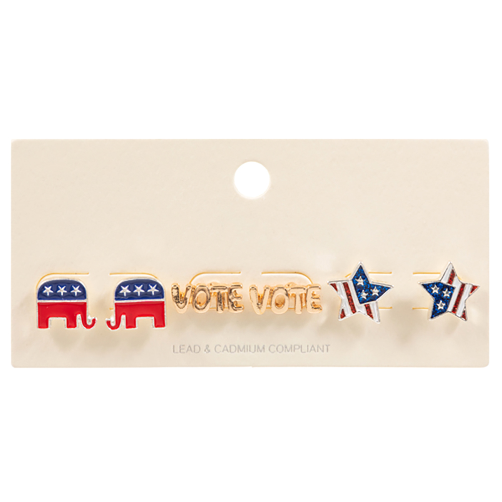 3Pairs - Enamel VOTE Republican Elephant Stud Earring Set