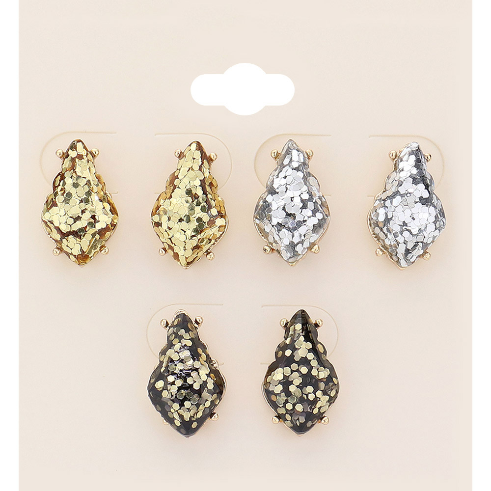 3Pairs - Glittered Petal Stud Earrings