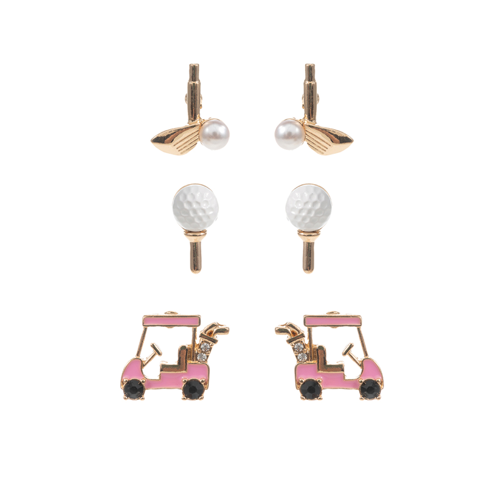 3PAIRS - Golf Theme Stud Earrings Set