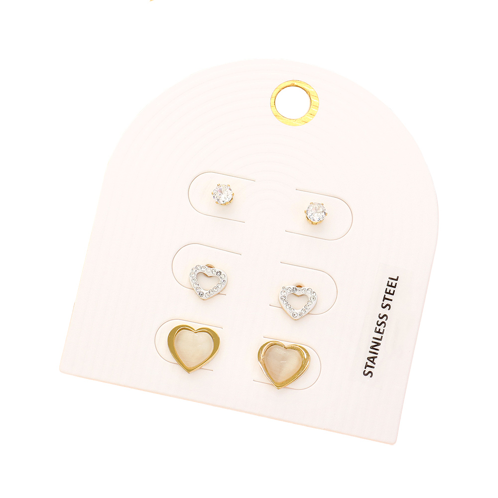 3PAIRS - Heart Stud Earring Set