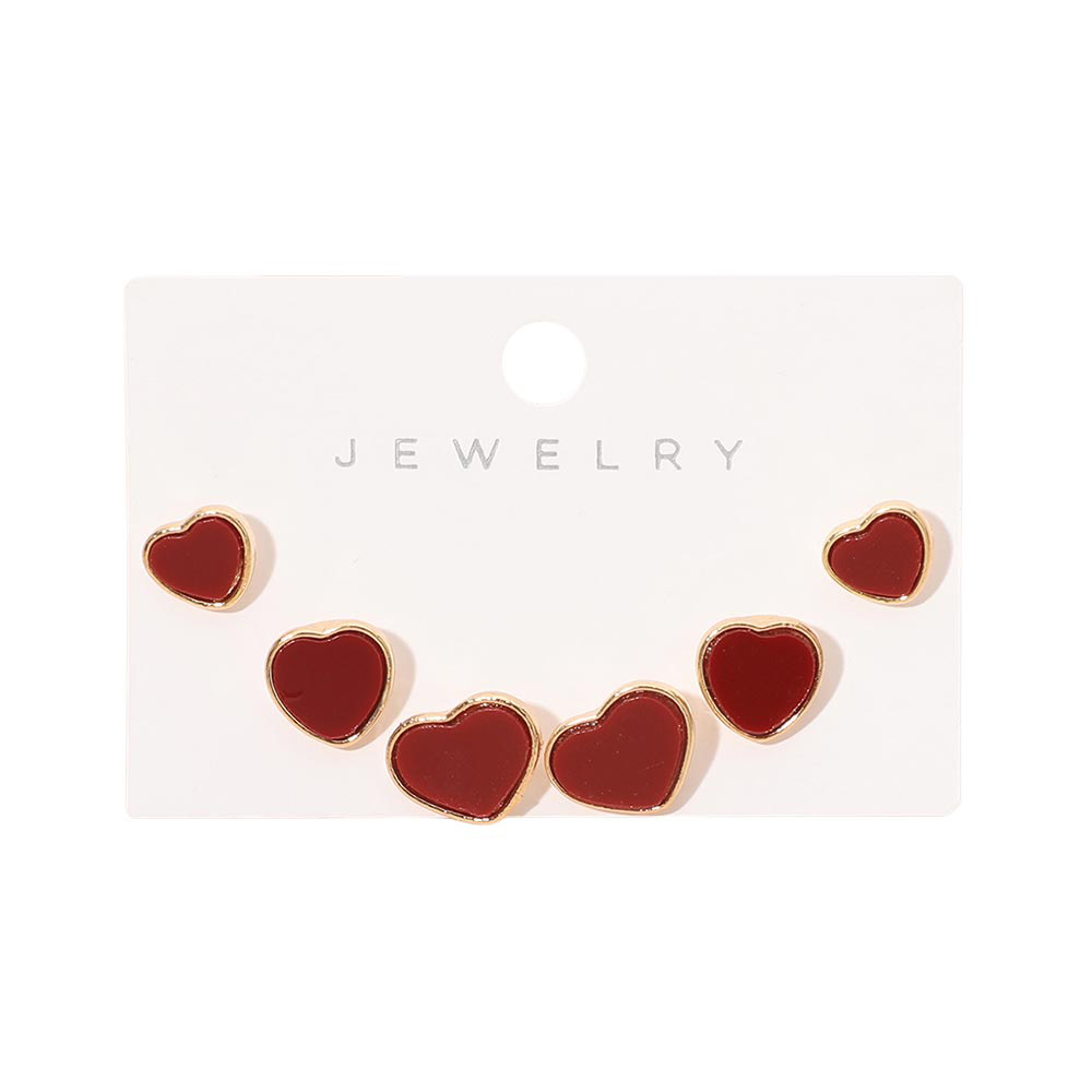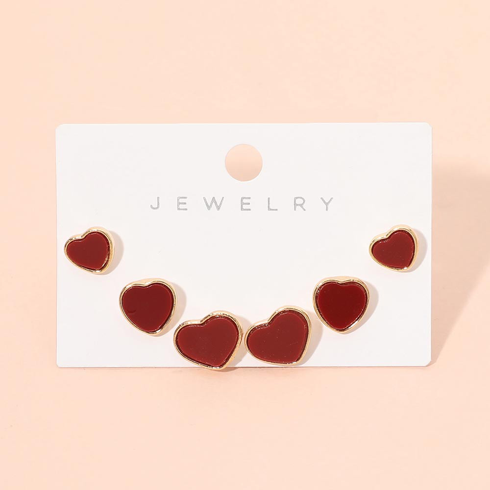 3Pairs - Heart Stud Earring Set