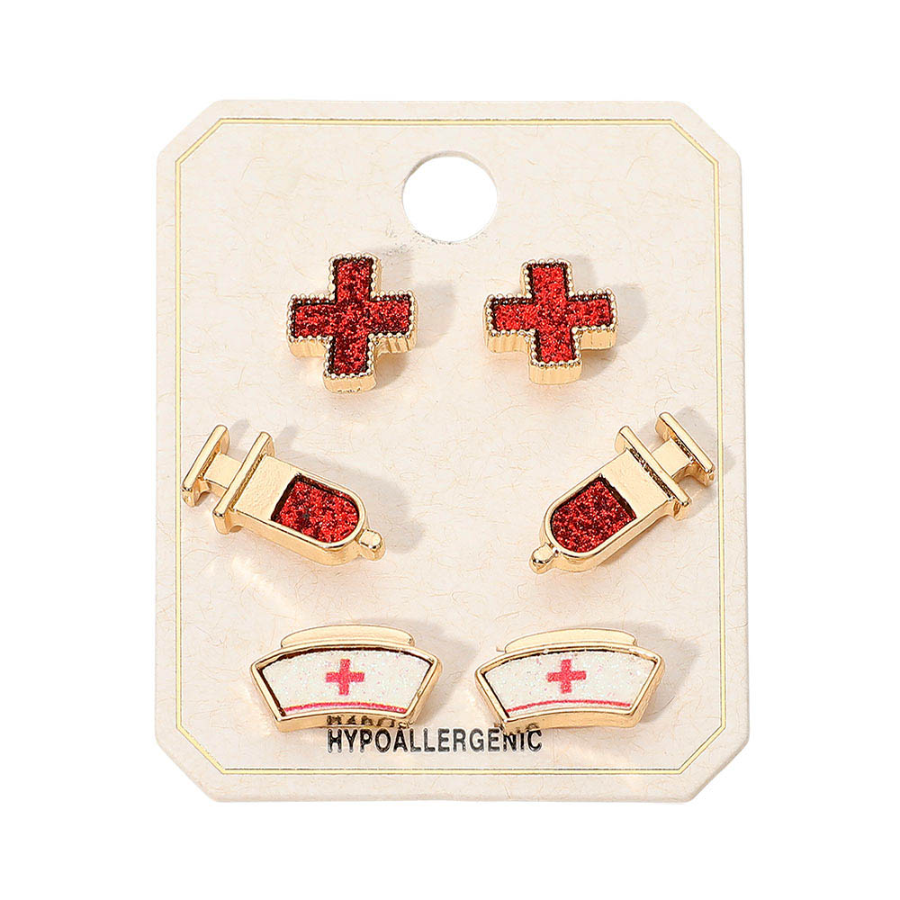 Details • Size : 0.3" - 0.7" L • Post Back • Cute multi-pair assortment featuring classic nurse symbols for playful daily styling. Perfect for workdays, gifting, or school spirit looks, offering mix-and-match versatility with charming themed details. • Lead and Nickel Compliant