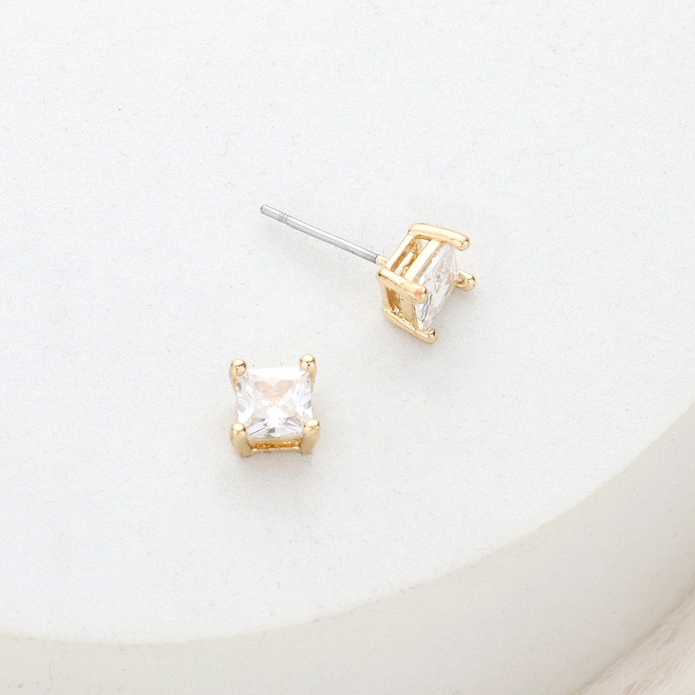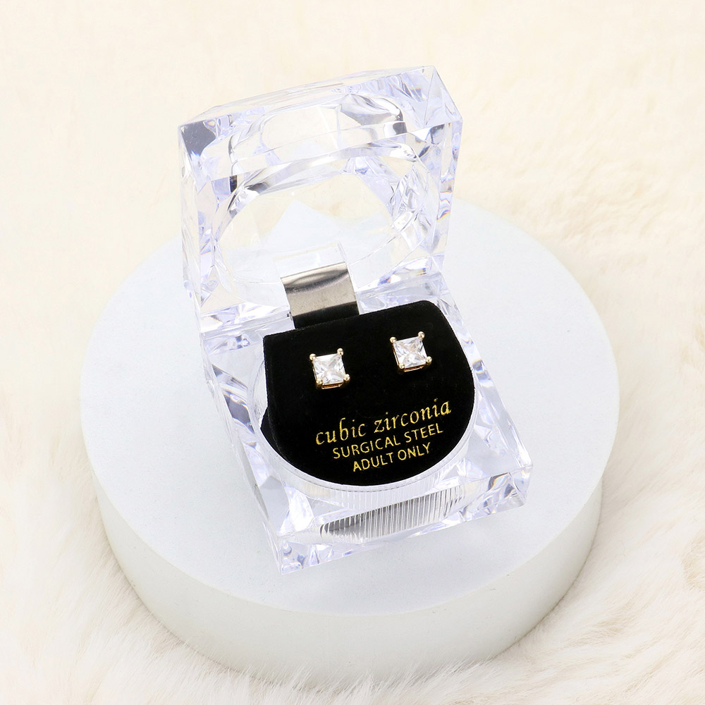 5mm Square Crystal Cubic Zirconia CZ Stud Earrings with Clear Box