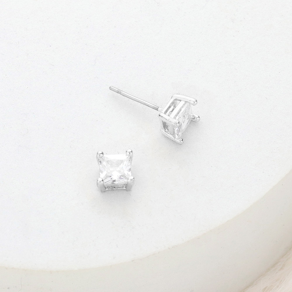 5mm Square Crystal Cubic Zirconia CZ Stud Earrings with Clear Box