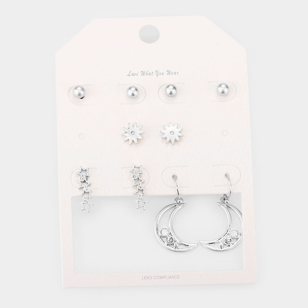 5Pairs - Metal Ball Star Crescent Moon Earrings