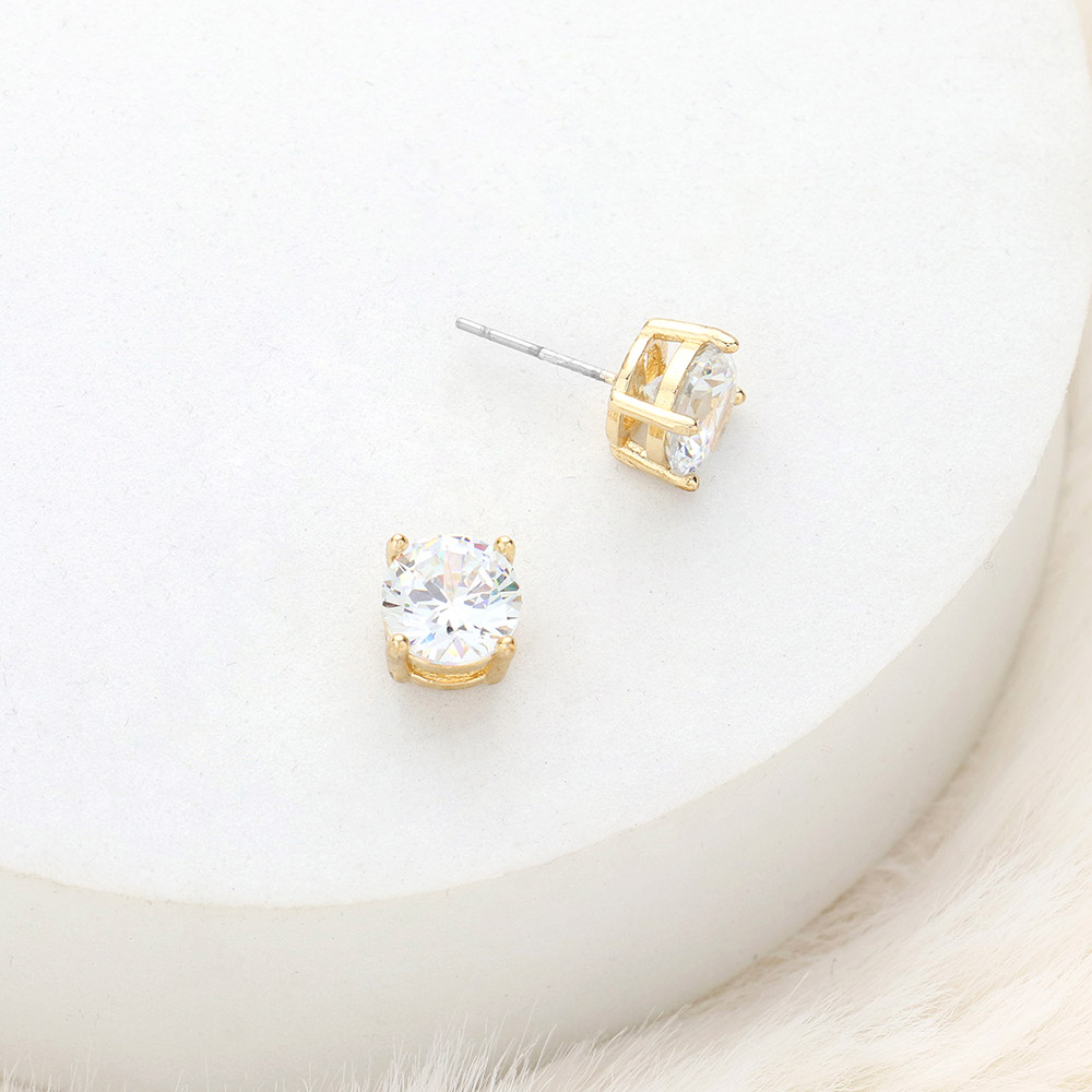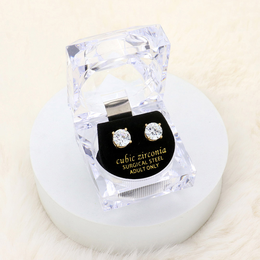 8mm Round Cut Crystal Cubic Zirconia CZ Stud Earrings with Clear Box