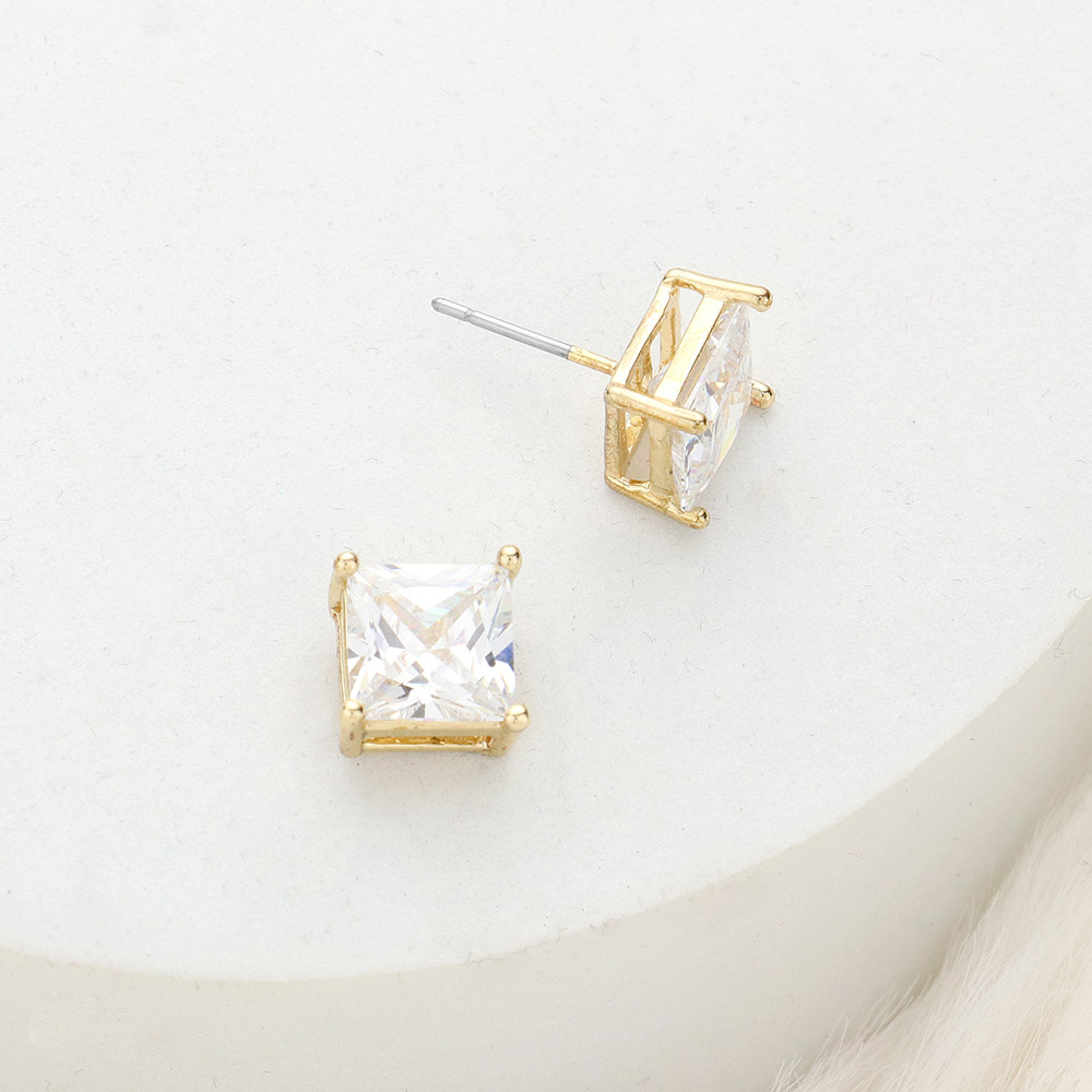 8mm Square Crystal Cubic Zirconia CZ Stud Earrings with Clear Box