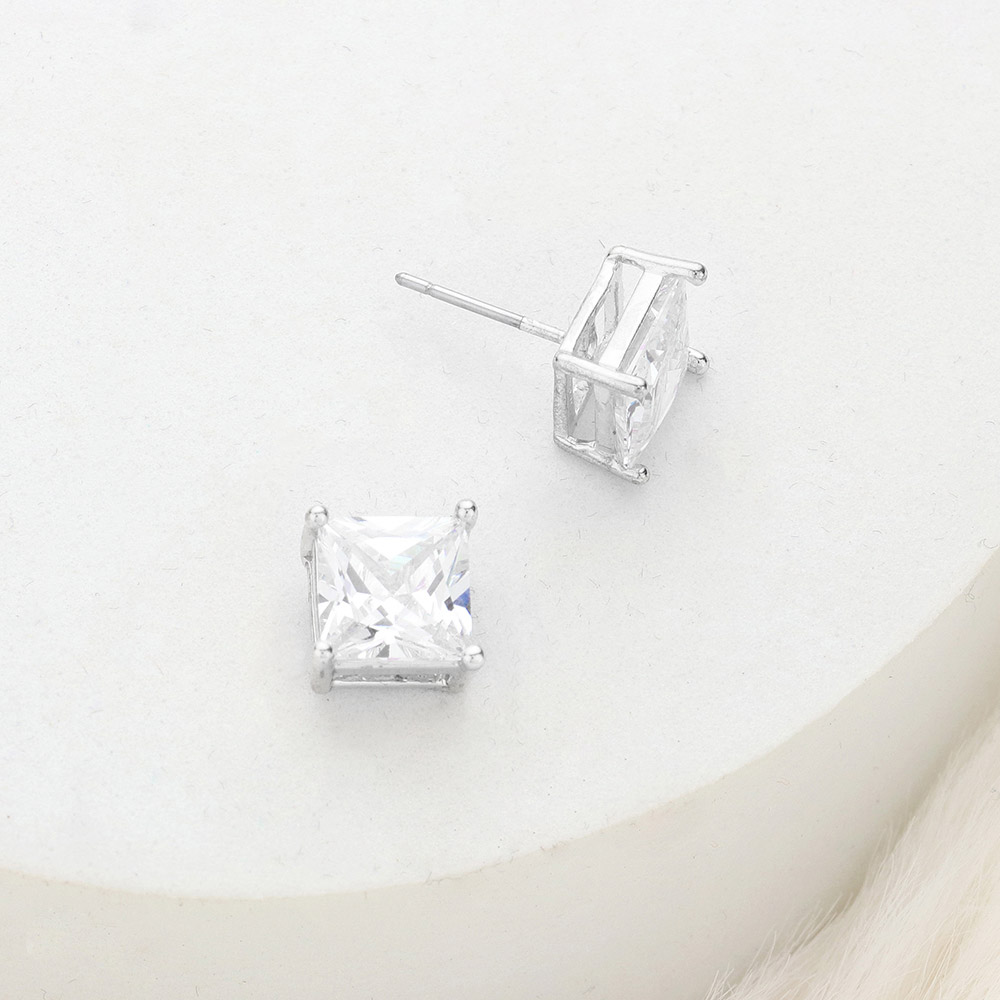 8mm Square Crystal Cubic Zirconia CZ Stud Earrings with Clear Box