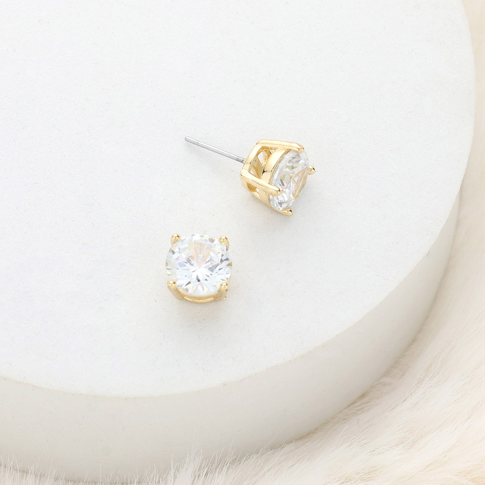 9mm Round Cut Crystal Cubic Zirconia CZ Stud Earrings with Clear Box