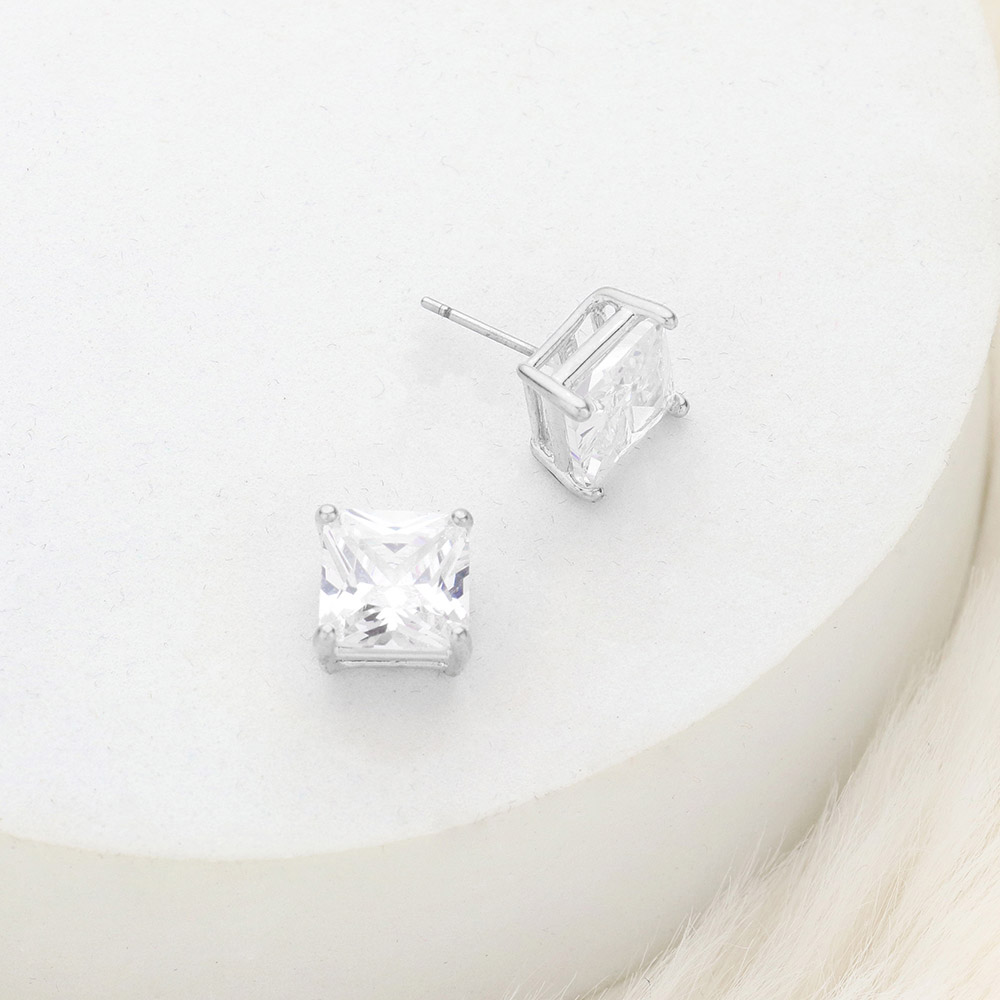 9mm Square Crystal Cubic Zirconia CZ Stud Earrings with Clear Box