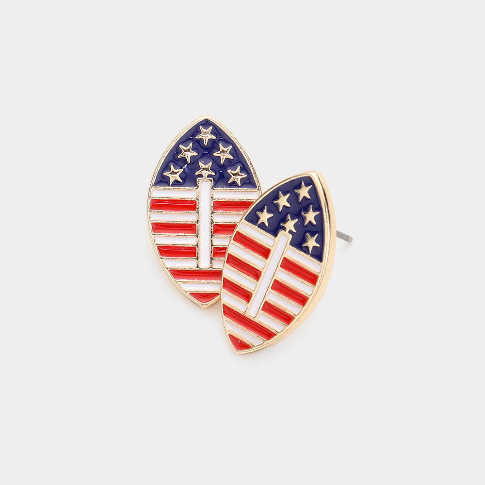 American USA Flag Enamel Rugby Ball Stud Earrings