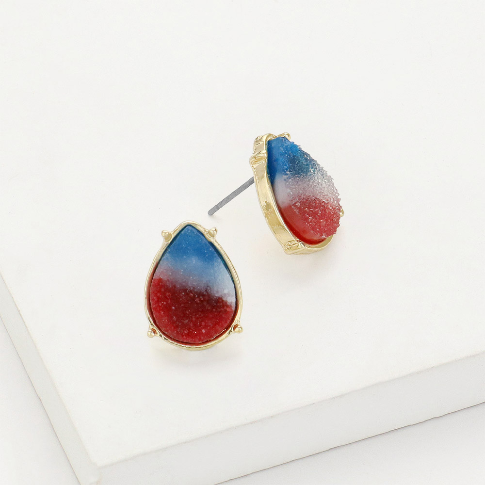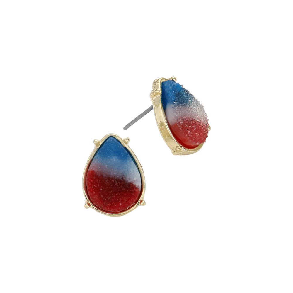 American USA Flag Theme Druzy Teardrop Stud Earrings