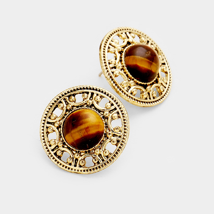 Brass Metal Flower Filigree Teardrop Dangle Earrings