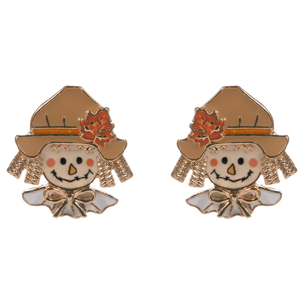 Details • Size : 0.8" X 0.9" • Titanium Post Back • Charming scarecrow stud earrings ideal for autumn outfits and Thanksgiving festivities. A cute seasonal accessory that adds festive flair to your holiday wardrobe or gift collection. • Lead and Nickel Compliant • Hypoallergenic