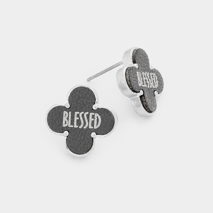 "Blessed" Leather Quatrefoil Clover Stud Earring