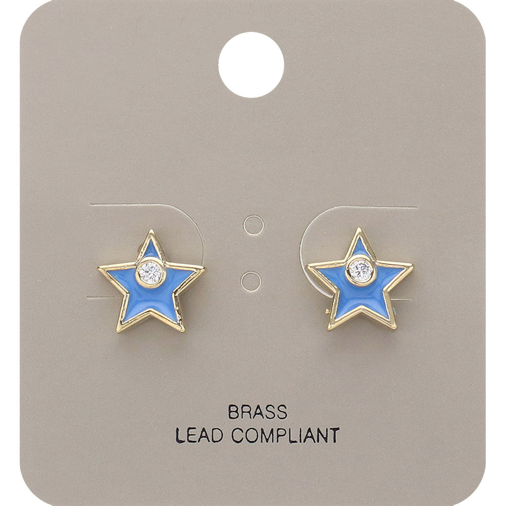 Details • Size : 0.5" X 0.5" • Post Back • Charming star-shaped stud earrings with a sparkling crystal at the center. Lightweight and versatile, they bring subtle shine to your everyday look and make the perfect gift for someone special. • Lead and Nickel Compliant • Made In Korea • Brass