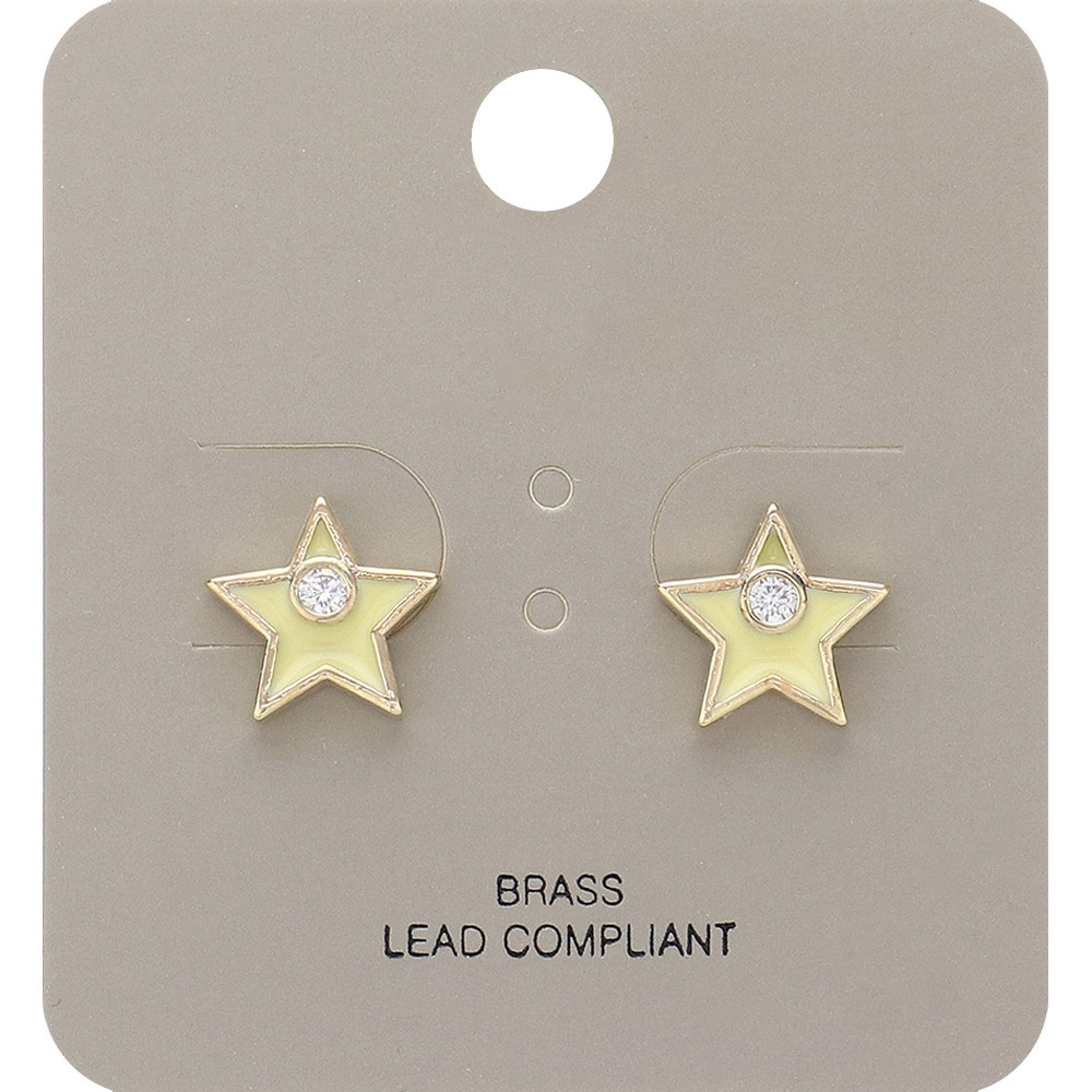 Details • Size : 0.5" X 0.5" • Post Back • Charming star-shaped stud earrings with a sparkling crystal at the center. Lightweight and versatile, they bring subtle shine to your everyday look and make the perfect gift for someone special. • Lead and Nickel Compliant • Made In Korea • Brass
