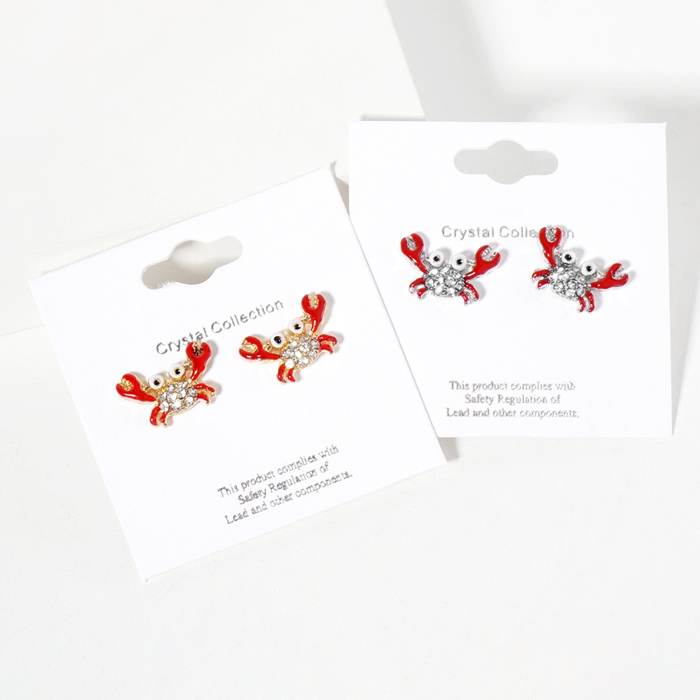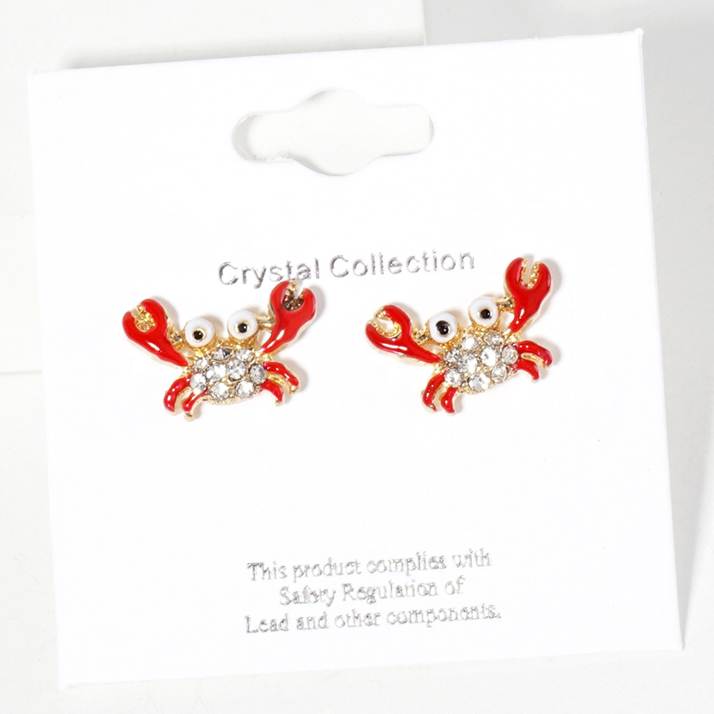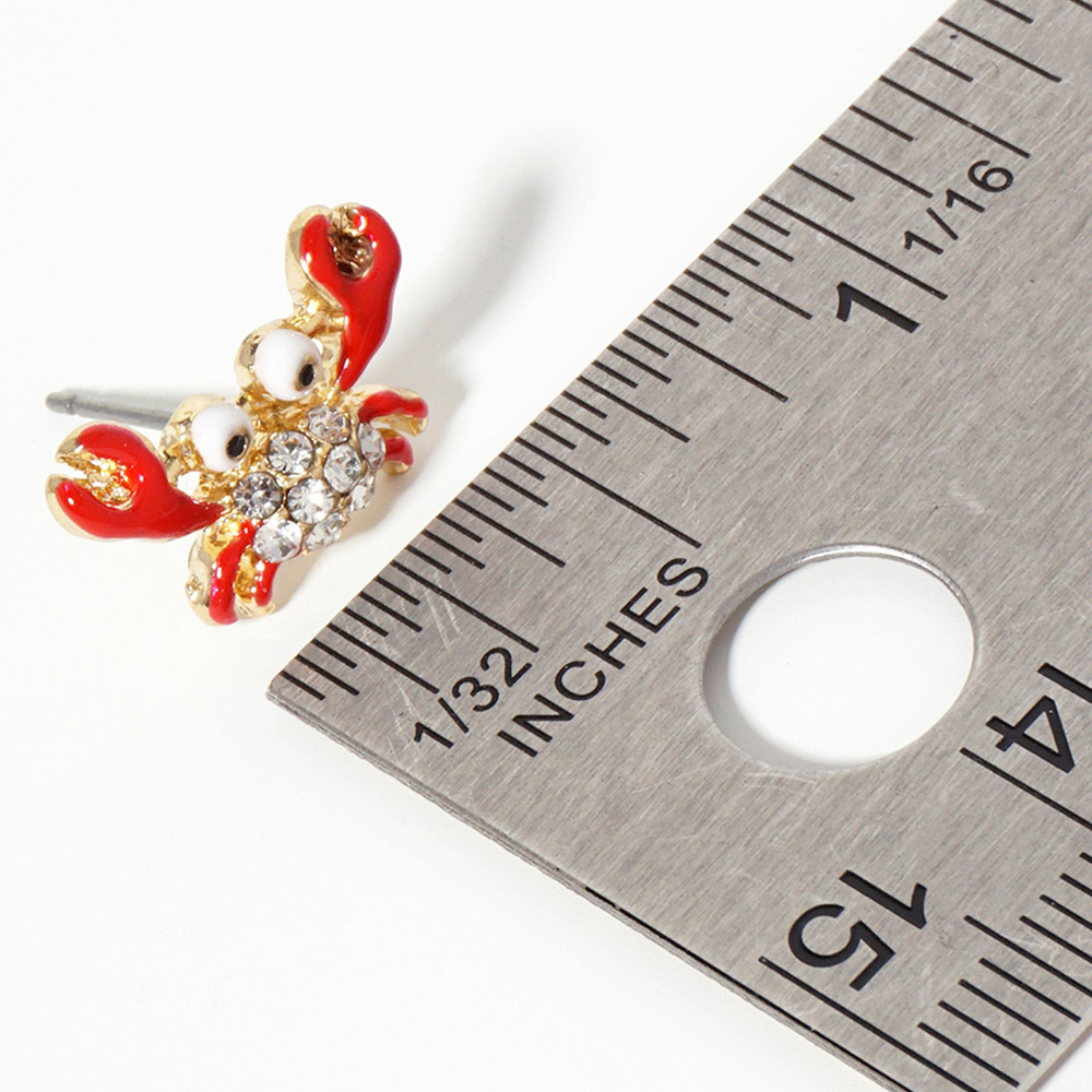 Details • Size : 0.7" X 0.4" • Post Back • Add a splash of seaside charm to your outfit with these playful crab-shaped stud earrings. Featuring eye-catching rhinestones and whimsical details, they’re perfect for fun, beachy looks or everyday wear. • Lead and Nickel Compliant