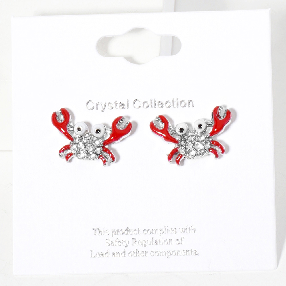 Details • Size : 0.7" X 0.4" • Post Back • Add a splash of seaside charm to your outfit with these playful crab-shaped stud earrings. Featuring eye-catching rhinestones and whimsical details, they’re perfect for fun, beachy looks or everyday wear. • Lead and Nickel Compliant