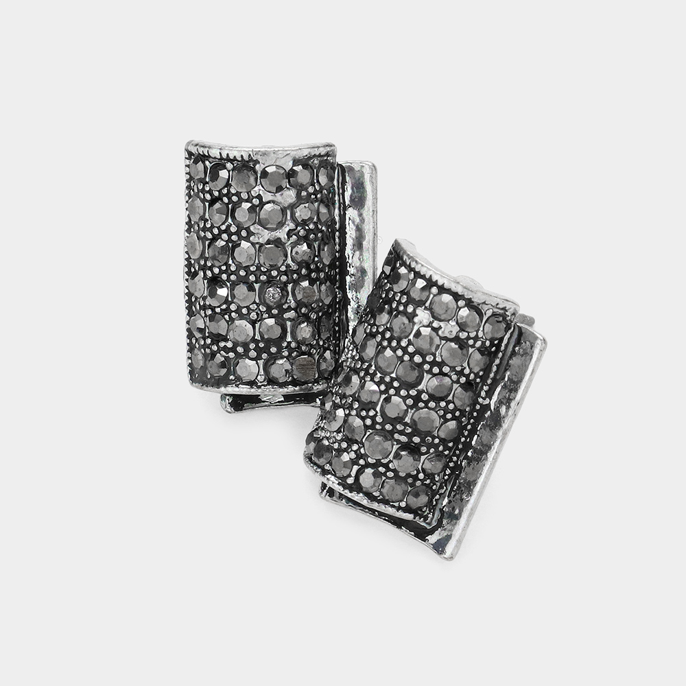 Sterling Silver Post Rhinestone Studded Oval Hoop Earrings