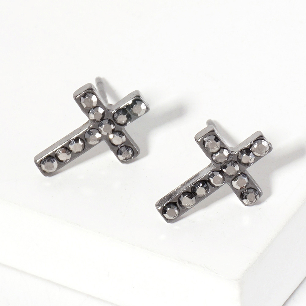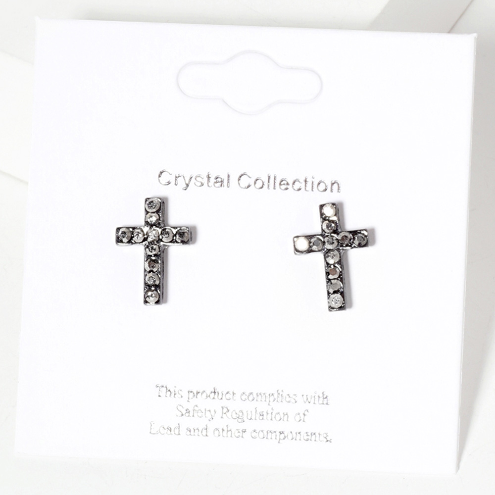 Gold Dipped CZ Stone Paved Wing Metal Cross Stud Earrings