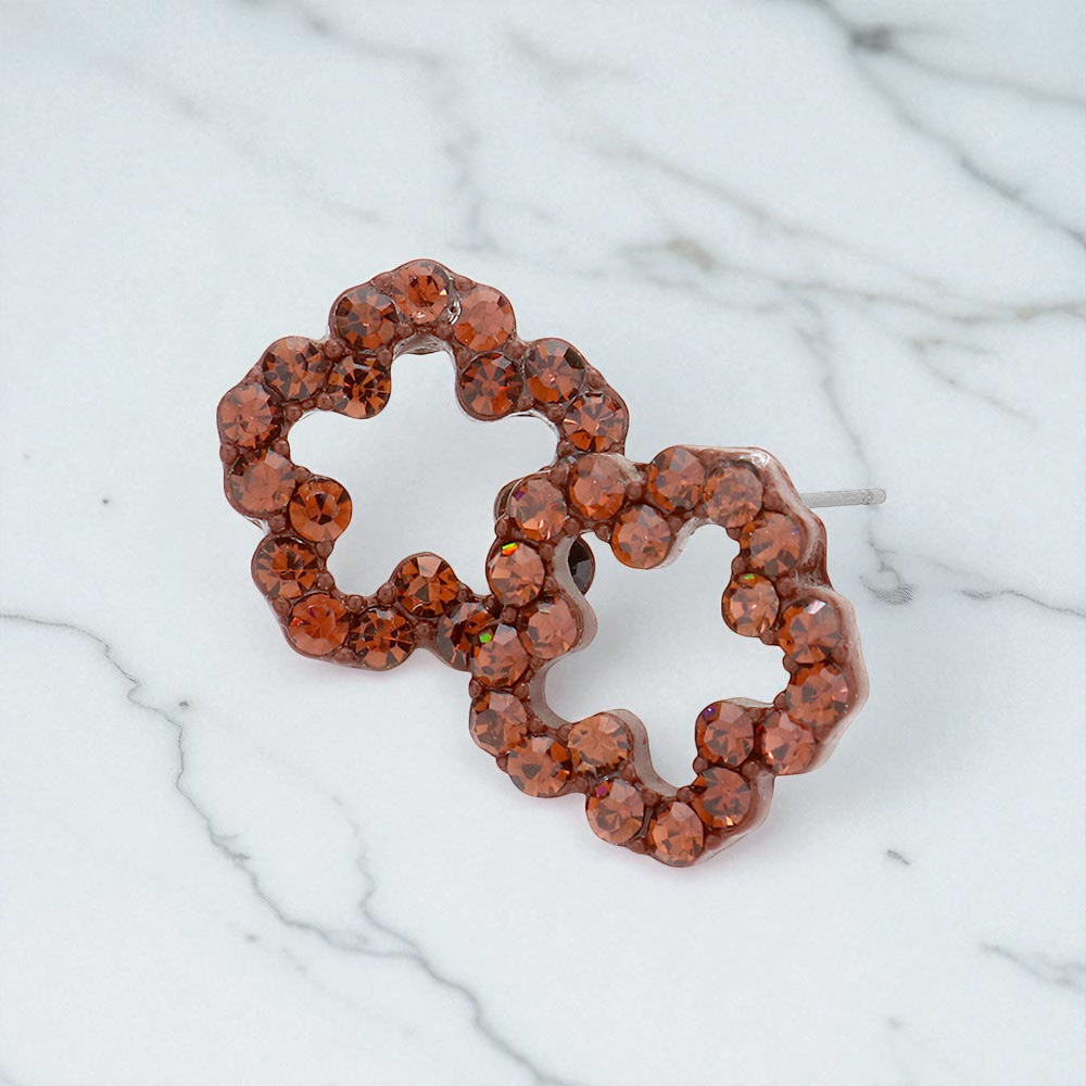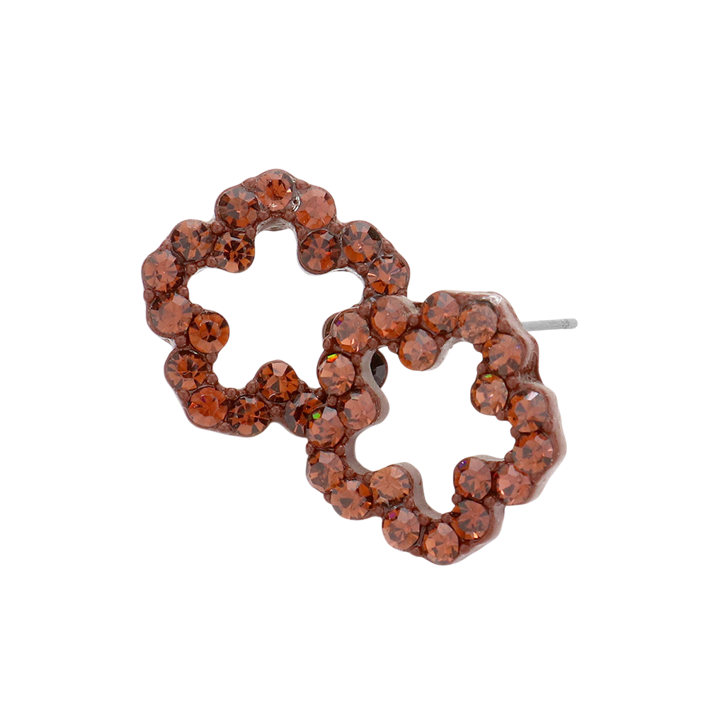 Double Layered Stone Paved Flower Charm Cuff Bracelet