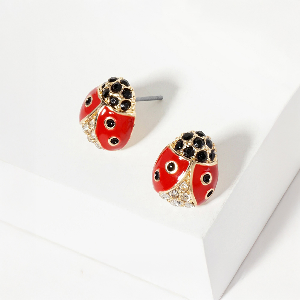 Details • Size : 1.2" X 1.2" • Post Back • Brighten your style with these adorable ladybug stud earrings. Featuring detailed accents and a playful design, they’re perfect for adding charm to casual outfits or gifting to nature lovers. • Lead and Nickel Compliant