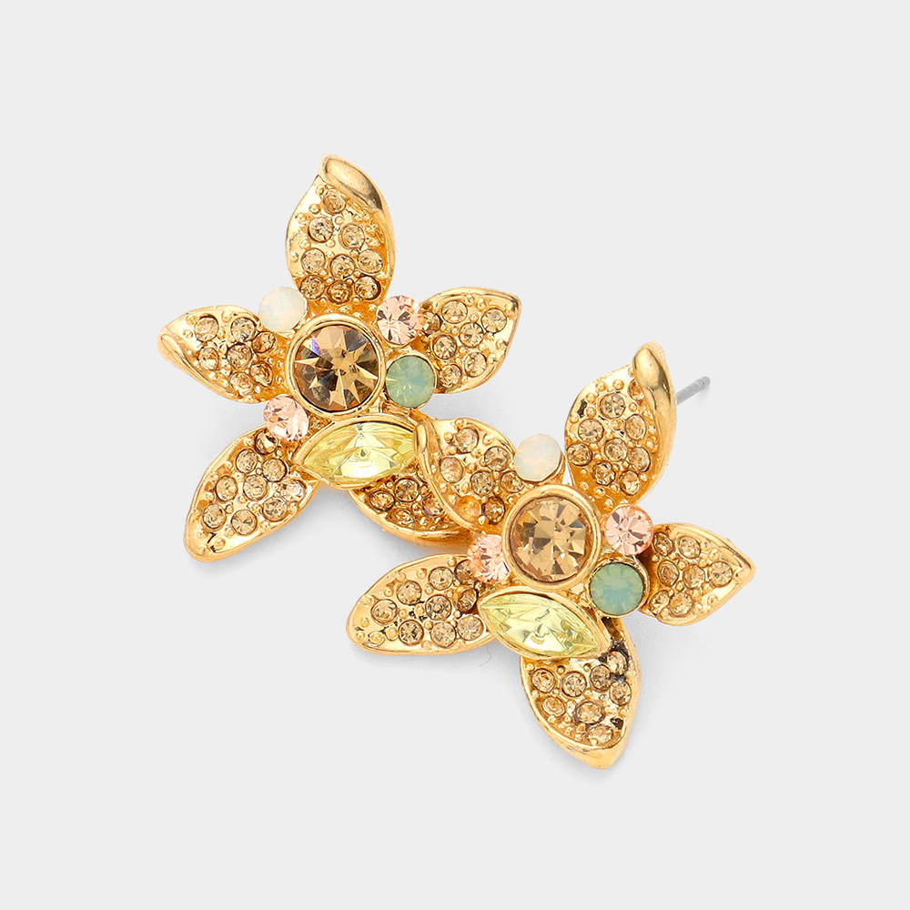 Crystal Rhinestone Pave Leaf Teardrop Evening Earrings