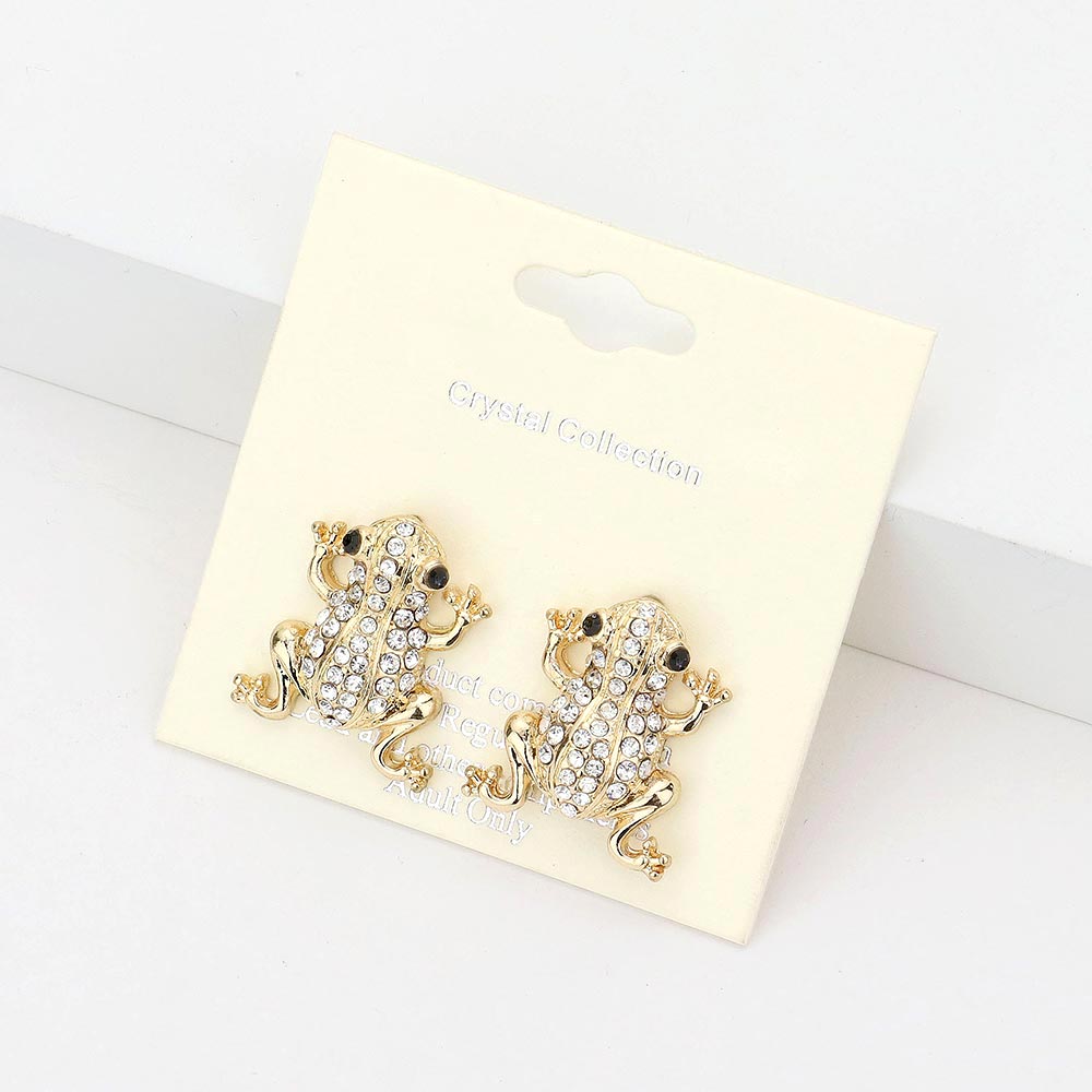 • These frog crystal stud earrings add a touch of whimsy and sparkle to your look. Featuring a charming frog design embellished with dazzling stones, they bring playful elegance and personality, making them the perfect accessory for adding character to any outfit.