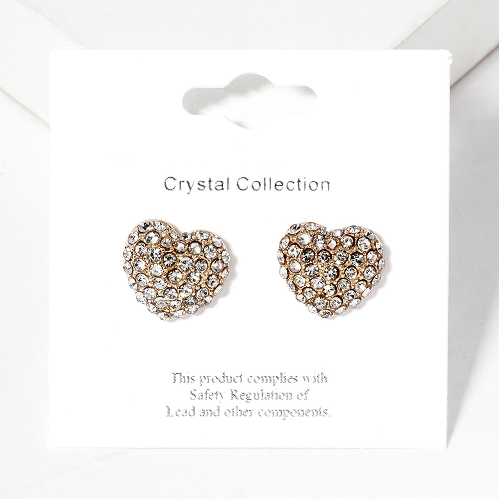 Details • Size : 0.5" X 0.5" • Post Back • Playful heart-shaped stud earrings adorned with sparkling crystal-like accents in a bold, vibrant finish. Perfect for making a fun statement, these lightweight earrings add a pop of personality and shine to any outfit—great for parties, casual wear, or gifting with flair. • Lead and Nickel Compliant